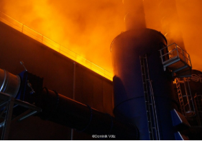 Solar panels on the roof and compressed air tanks inside the building made fire fighting harder.